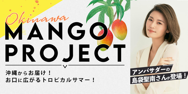 沖縄マンゴープロジェクトでは、沖縄を代表する南国のフルーツ・マンゴーをホームページとライブコマースで販売します。アンバサダーには沖縄県出身の大人気モデル・島袋聖南さんをお迎えし、県産マンゴーの美味しさと魅力をアピール!県内でご活躍されているマンゴー農家さんのPRや販路拡大を支援いたします。