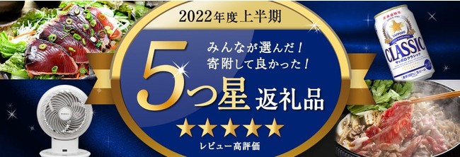 その他、ふるなびでは数ある返礼品の中から2022年上半期に特に評判が良かった返礼品を寄附者様からのレビューをもとに「5つ星の返礼品」として、特集記事でご紹介しています。