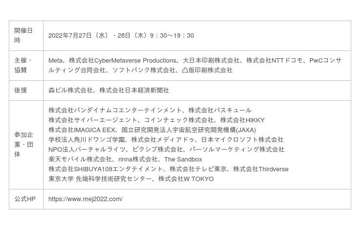 ■「METAVERSE EXPO JAPAN 2022」開催概要