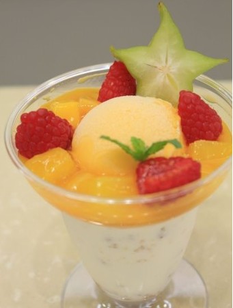 【カフェ】ヨーグルトのムース&マンゴーのグラスデザート