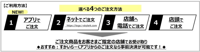 ・テイクアウト専用サイトURL : https://togo.i-skylark.com
