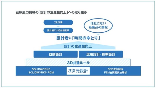 風水力機械カンパニー、環境事業カンパニー、精密・電子事業カンパニーと3事業を柱とする産業機械メーカーの荏原製作所グループでは、事業体ごとに設計環境を独自に進化させていました。その中で、荏原製作所と風水力事業の一役を担う荏原風力機械は、お客さまのニーズにより早く的確に応えられることを目的とした「標準設計や設計自動化」が可能な設計環境を作るため、設計生産性向上の基盤となる「3D共通ルール」策定に取り組んできました。