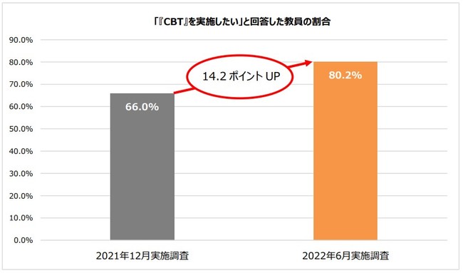 Topic1.教員の80%が『CBT』を実施したいと回答!~半年前の前回調査から約14ポイント増加しており期待感の高まりが明らかに~