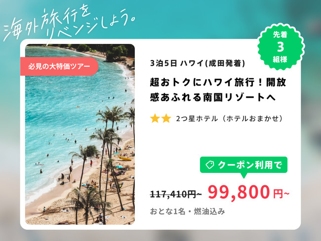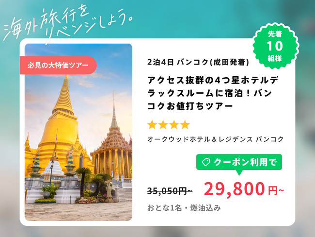「#リベンジ海外旅行」応援クーポン適用 ツアー例