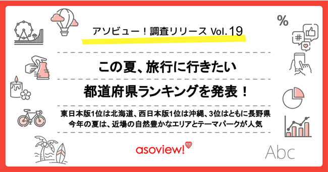 【アソビュー!調査リリース】この夏、旅行に行きたい都道府県ランキングを発表!<東日本版・西日本版>1位2位には北海道と沖縄、3位は長野県。今年の夏は、近場の自然豊かなエリアとレジャー施設が人気