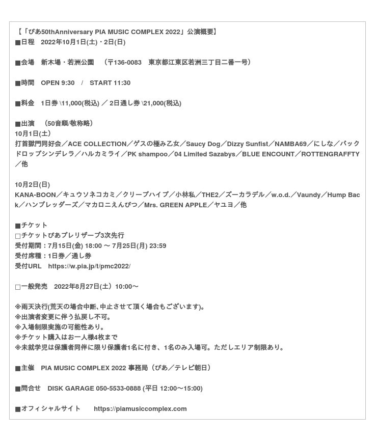 ▼「ぴあ50thAnniversary PIA MUSIC COMPLEX 2022」 https://piamusiccomplex.com