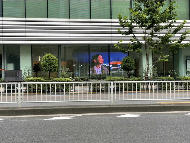 東京都港区虎ノ門に人気のP1.95透過型LEDウィンドウビジョンを設置