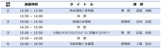 本公開講座「私たちを取り巻く水環境」では、「水環境」、「水循環」を観察し理解するための視点を紹介します。みなさまのご参加を心からお待ちしております。