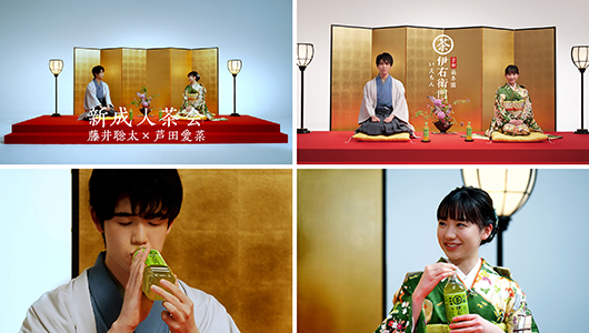 「伊右衛門 新成人茶会」では、7月19日に20歳の誕生日を迎えた藤井さんと6月23日に18歳になった芦田愛菜さんが再び共演。成人となるこの節目の年に、伊右衛門を飲みながら、お互いにインタビューしあう内容となっています。動画は、芦田さんから藤井さんへ20個の質問をする「新成人茶会 20歳の藤井聡太に20個の質問」篇と藤井さんから芦田さんへ18個の質問をする「新成人茶会 18歳の芦田愛菜に18個の質問」篇の二本立てで構成されています。