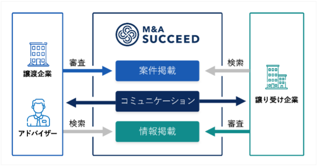「M&Aサクシード」は、譲渡企業と譲り受け企業をオンライン上でつなぐ法人・審査制M&Aマッチングサイトです。譲渡企業は「M&Aサクシード」に会社や事業の概要を匿名で登録でき、譲り受け企業はその情報を検索して閲覧できます。譲り受け企業は興味を持った譲渡企業へ直接アプローチできるため、譲渡企業にとっては、潜在的な資本提携先の存在や、自社の市場価値を把握するきっかけになります。これにより、譲渡企業は経営の選択肢の一つとしてM&Aを早期から検討でき、経営者の選択肢が広がります。2017年11月にサービスを開始し、全国の譲渡案件が累計12,200件以上(掲載中4,600件以上)登録され、利用中の譲り受け企業は8,000社以上です(2022年5月時点)。2022年6月、「ビズリーチ・サクシード」から「M&Aサクシード」にサービス名を変更しました。URL:https://ma-succeed.jp/