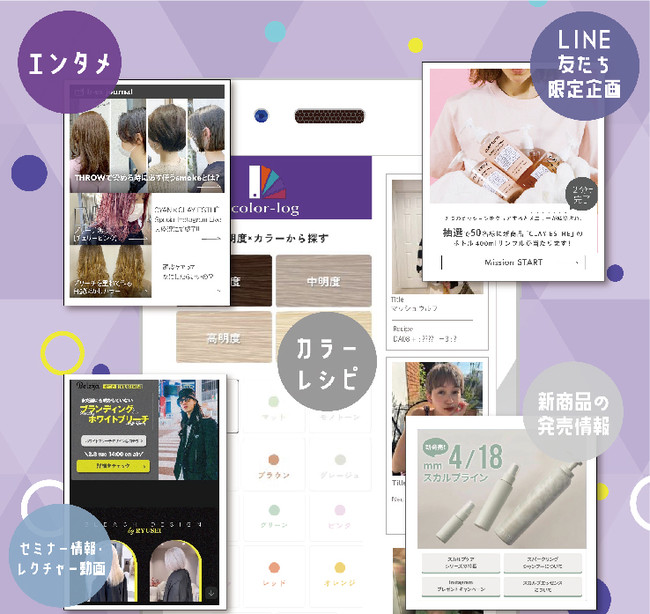 LINEでトレンドカラーのレシピやセミナー情報などの取得も可能に。包括的なサポートのため、美容師専用のLINE公式アカウントを開設。