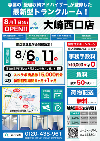 オープンに合わせ8月6日(土)、8月11日(祝・木)に見学会を実施しますので、ぜひ【スペラボ・大崎西口店】にお越しくださいませ。