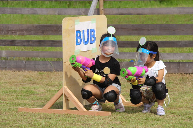 そこでBUB RESORTでは、小学生の間で流行っている銃を使ったバーチャルゲームを実際に現実世界で行ってみようと考え、開催に至りました。アウトドア環境で安全配慮の上で、対面で行うことによりオンラインでは培えない、体を動かしたコミュニケーションで仲間意識を育むことが出来ます。