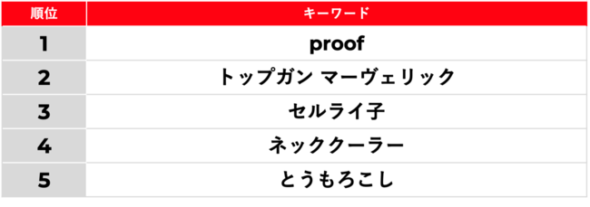 BTSのデビュー曲から最新曲までのタイトル曲が収録されているAnthology Album「Proof」が1位にランクイン。BTS人気の高さはもちろん、6月にはBTSの活動休止も発表されており、一際注目度が高かったことなどが要因として考えられます。2位は1986年公開・トム・クルーズ主演「トップガン」の続編として公開中の映画「トップガン マーヴェリック」。36年を経ても色褪せない人気の高さがうかがえます。