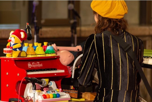 3.Norissyi Landさんによるトイミュージック演奏(八天堂カフェリエ バームクーヘン工房前)