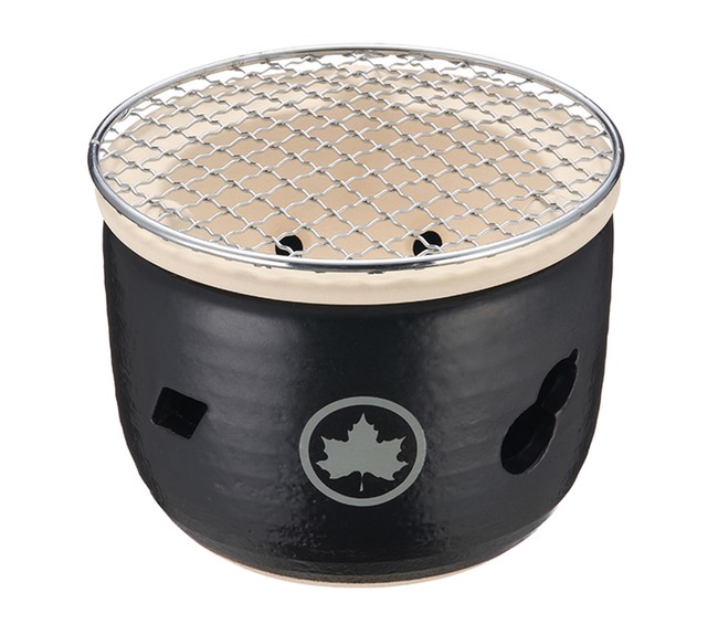 伝統工芸「萬古焼」とのコラボレーションにより、直火に耐えられる陶器製の卓上コンロが誕生。本体に水を溜め、その上に火床を置いて炭に着火する水コンロだから、コンロの熱がテーブルに伝わるのを防ぎ、テーブルが焦げるリスクを軽減できる。