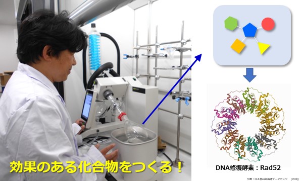 Rad52のDNA修復する能力を強力に抑える化合物の創製を目指します。
