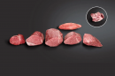ヒレ ( ヘレ ) は牛1頭からわずか2.6%程度しか取れない超希少部位です。その特徴は柔らかさにあります。また柔らかさが特徴でありつつ、脂肪が少なく、肉質もきめ細やか。品格を感じる繊細な味はもちろんのこと、舌触り、口どけはじめ、幾重もの感動がひろがります。