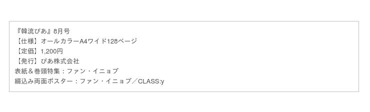 【本日発売】『#韓流ぴあ』8月号 『#女神降臨』で大ブレイク中 #ファンイニョプ が表紙を飾る