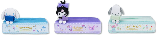 サンリオ監修の限定プライズ「ティッシュカバー」、「ふわふわバッグ」、「マスコット」の3アイテム15種類を展開します。「2022年サンリオキャラクター大賞」の上位に輝いたシナモロール、ポムポムプリン、クロミ、ポチャッコ、マイメロディ、ハローキティの「おとまり会」をテーマにした完全描き下ろしデザインです。