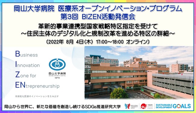 【岡山大学】岡山大学病院 医療系オープンイノベーション・プログラム「第3回BIZEN活動発信会」〔8/4 木,オンライン〕