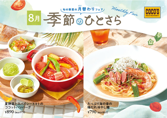 株式会社ココスジャパン(代表取締役社長:一木 直哉 本社:東京都港区)が全国に展開するファミリーレストラン「ココス」では8月1日(月)より、季節を感じる食材を使用した月替わりフェア「季節のひとさら~8月~」を開催します。