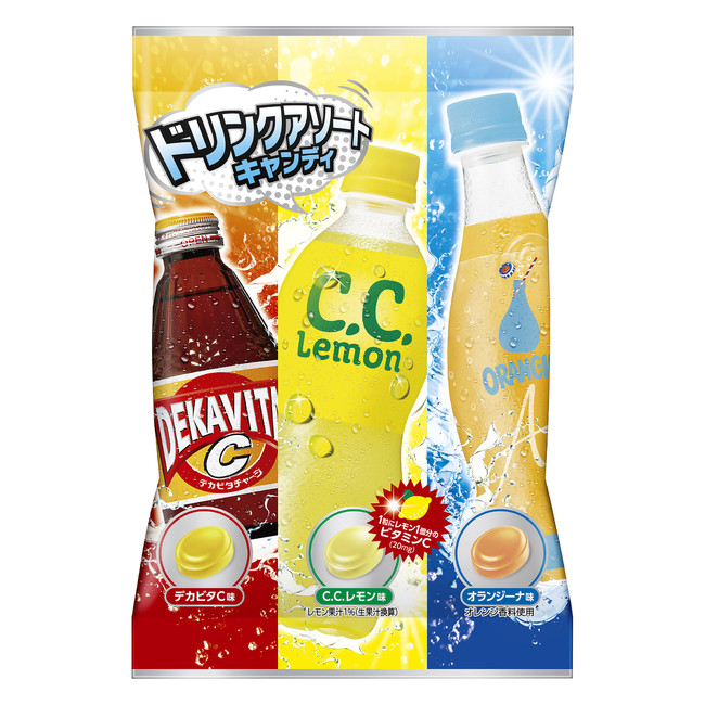 「デカビタC」「C.C.レモン」「オランジーナ」の3種類の味わいが楽しめるアソートタイプ。