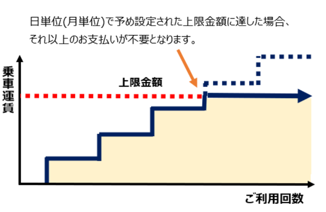 『上限運賃適用サービス』は、日単位(月単位も可能)のご利用金額に上限を設定し、上限に達した場合はそれ以上のお支払いが不要となる仕組みです。