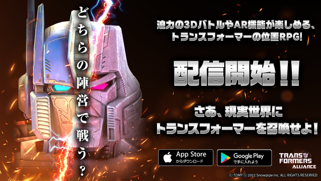 Snowpipe Inc.(代表取締役 キム・ジョンイック)と株式会社SNOWPIPE JAPAN(代表取締役 竹園峻成)は株式会社タカラトミーの人気IPである変形ロボットキャラクター「トランスフォーマー」にAR(拡張現実)とLBS(位置情報サービス)技術を活用したモバイルRPGゲーム、「TRANSFORMERS ALLIANCE」を本日より正式リリースしました。