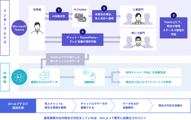 Microsoft Teams上に社内ヘルプデスクを実現ー有人の対話データから、ナレッジや人の情報を学習しAIの自動応答を拡大、利用するほど賢くなるナレッジ共進化型 AI ヘルプデスクを提供開始