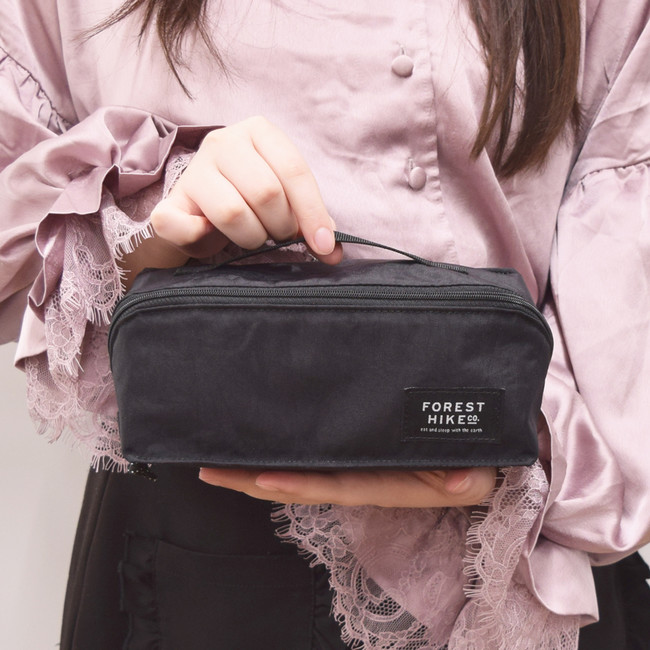 四角いポーチをファスナーで開くとトレーに変身。