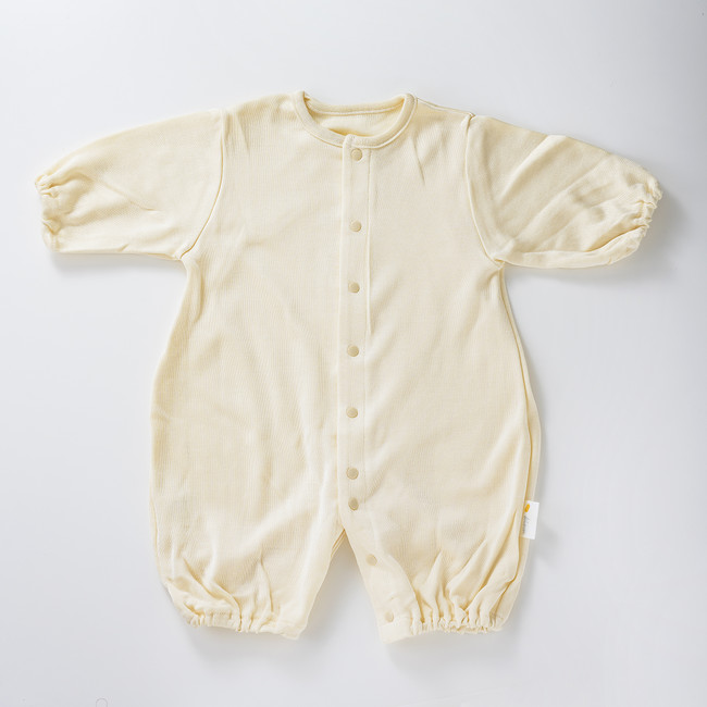 上下が繋がっている丈が長い赤ちゃん用肌着で、2つに分かれた裾からそれぞれ足を出すことができます。汗取りや冷え防止の役割があり、お家で過ごす時は、ツーウェイ1枚で部屋着として、外出時にはロンパースやカバーオールなどの下に着る事ができます。