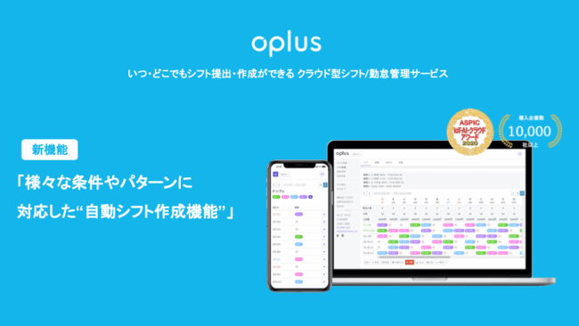 Oplus株式会社(所在地:東京都渋谷区、代表取締役社長:杉原 和樹、以下当社)が管理するブラウザ・スマホ・アプリの全てに対応したシフト・勤怠管理DXサービス「oplus(オプラス)」にて、様々な条件やパターンに合わせ、瞬時に自動でシフト作成を行う「自動シフト作成機能」がアップデートされました。