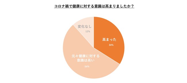 半数以上がコロナ前から健康に気を付けており、34%の方がコロナ禍でさらに健康意識が高まったという結果になりました。
