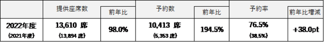 ※ 日本航空とのコードシェア分については、提供座席数および予約数に含まれておりません。