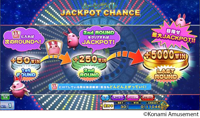 1ゲームの間に全ての風船を割ると、「ムーンライトJACKPOT CHANCE」が獲得できます。