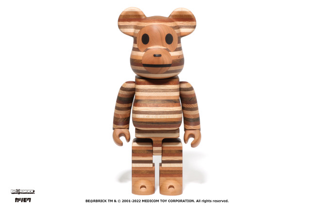BAPE(R)の代表的なアイコンの一つである「BABY MILO(R)」と、「メディコム・トイ」のマスターピースである クマ型ブロックタイプフィギュア「BE@RBRICK」、さらに「カリモク」の家具職人の卓越した技術が加わり、 400%サイズ(全高約280mm)の木製の「BE@RBRICK カリモク BABY MILO(R) HORIZON」が登場。