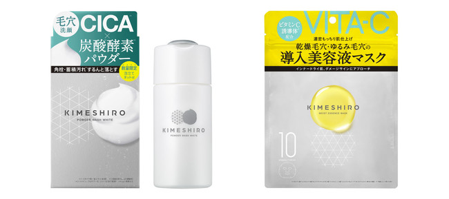 キメを整えるスキンケアブランド「KIMESHIRO(キメシロ)」より、角栓・蓄積汚れ*1をやさしくするんと落とす「酵素*洗顔パウダー」と乾燥毛穴・ゆるみ毛穴*²をケアする「導入美容液マスク」が新発売!
