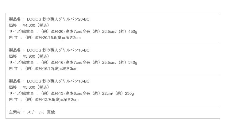【 LOGOS 鉄の職人グリルパン13-BC 】 https://www.logos.ne.jp/products/info/10299