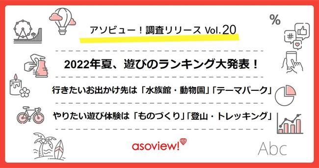 【アソビュー!調査リリース】2022年夏、遊びのランキング大発表!お出かけしたいのは「水族館・動物園」「テーマパーク」!やりたい遊び体験は「ものづくり体験」「登山・トレッキング」
