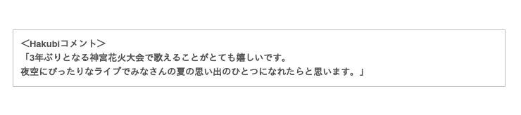 “東京2大花火大会”の1つ「神宮外苑花火大会」が8月20日(土)、3年ぶりに開催。このたび、アフターライブにTHE BEAT GARDENとHakubiの出演が決定しました。