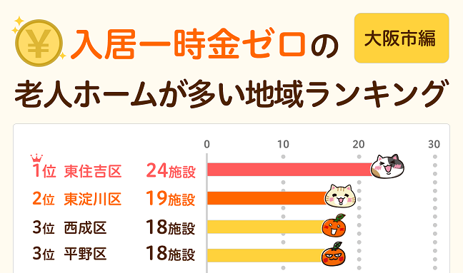 【みんなの介護】老人ホーム選びの幅が広がる!「一時金なし」で入居できる施設が多い地域ランキング【大阪市編】