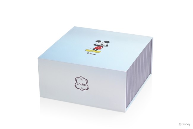 ミッキーマウスが目元を手で覆い、「いないいないばあ」をして遊んでいるような楽しいデザインのギフトボックス。