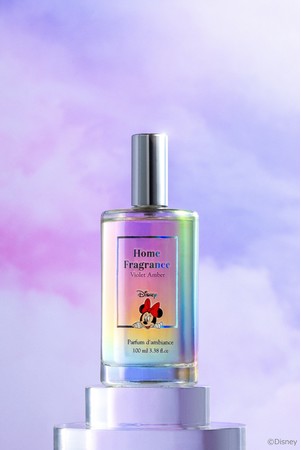 バイオレットやジャスミンの華やかな香りと、アンバーの深みのある甘さが空間を彩るルームスプレー。かわいい顔をのぞかせるミニーと、虹色に輝く容器が遊び心をくすぐります。