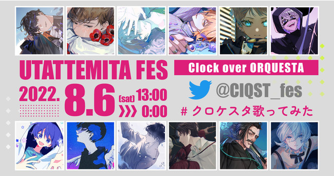 SNS連動型キャラクターソングプロジェクト『Clock over ORQUESTA(クロック・オーバー・オルケスタ)』(株式会社viviON、所在地:東京都千代田区、代表取締役:明石耕作) https://clockoverorquesta.com/ は、8月6日(土)13時から、12名の"歌い手"にご参加いただき歌ってみた動画を続々と公開していくオンラインフェスイベント「クロケスタ歌ってみたフェス」を開催します。