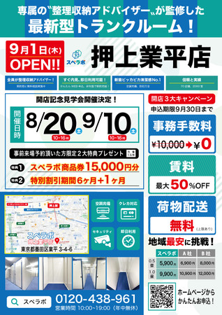 【9月1日(木)オープン】見学から契約、解約まで完全非接触・非対面、お申し込みからご利用まで最短1時間!都内にて絶賛運営中のトランクルーム【スペラボ】が墨田区業平に出店!