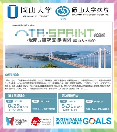 【岡山大学】2023年度「橋渡し研究プログラム(岡山大学拠点)」オンライン公募説明会〔8/29,31 オンライン〕