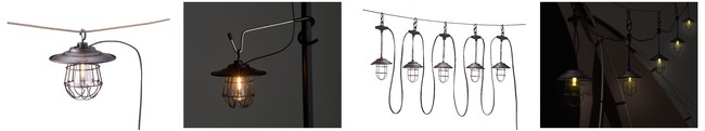 ひとつ吊るすだけでやさしく楽しい雰囲気を演出できる「どんぐりランプ」は、ランタンとフックの一体型でランタンポールやテント内にスムーズに吊り下げ可能。5連式デコレーションライトは、各ライトにカラビナが付いているのでお好みの場所にライトを吊り下げることができ、キャンプサイトをさらに明るく彩る。