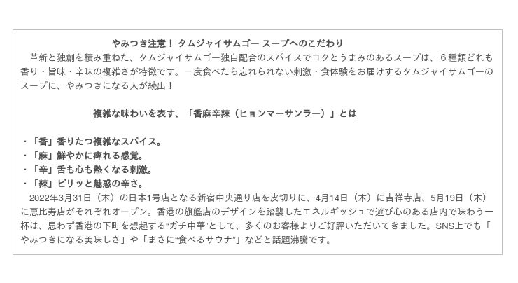 「株式会社譚仔日本」のプレスリリース