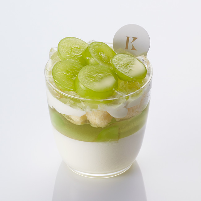シャインマスカットの果肉を入れたジュレを、ふんわり軽い食感のレアチーズにのせ、